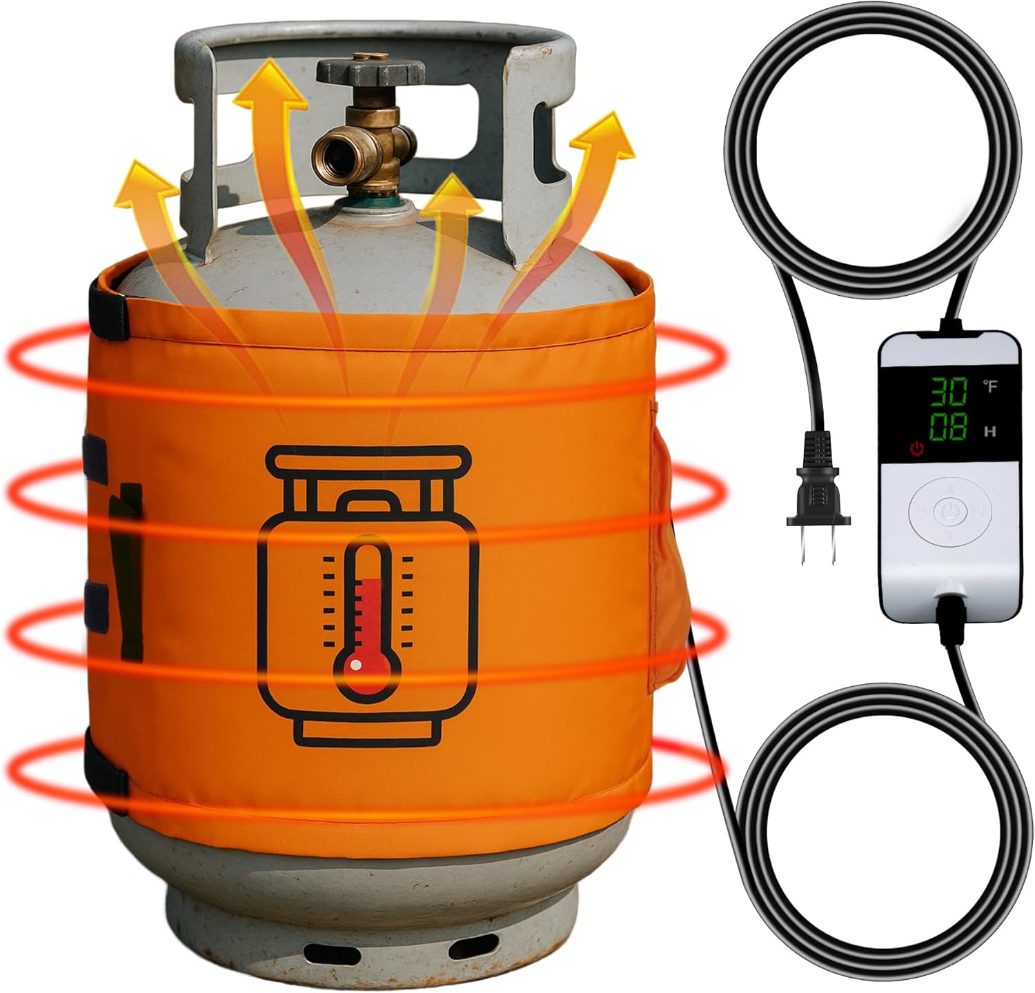 Propane Tank Heater Blanket with Thermostat & Timer – Adjustable Warmer for 5-40LB LP Cylinders, Waterproof for Camping & Grilling